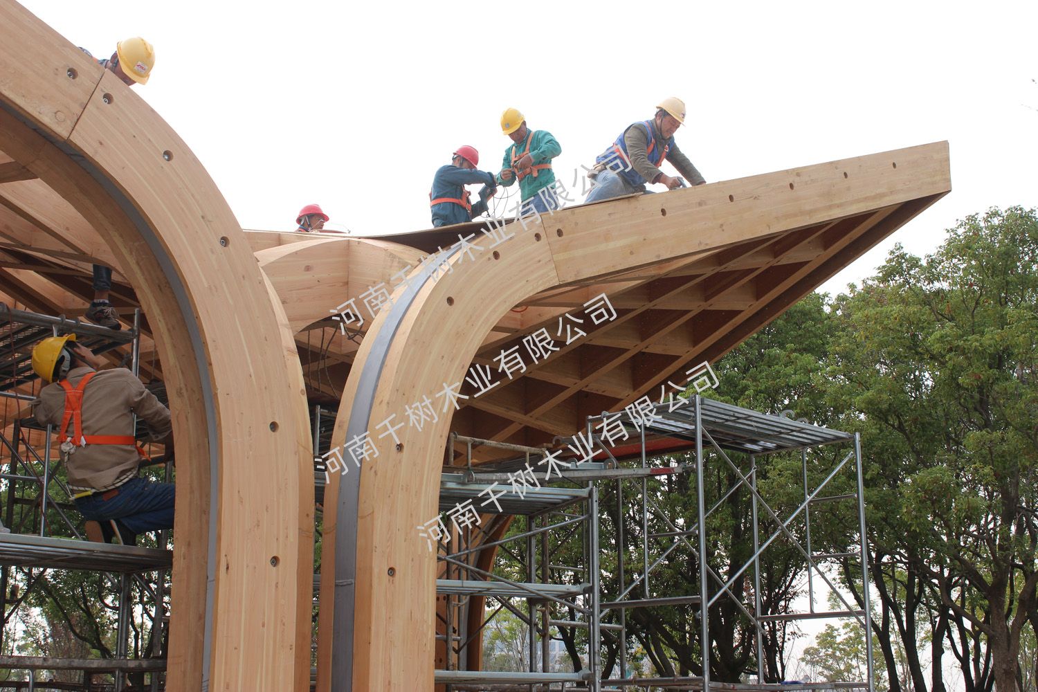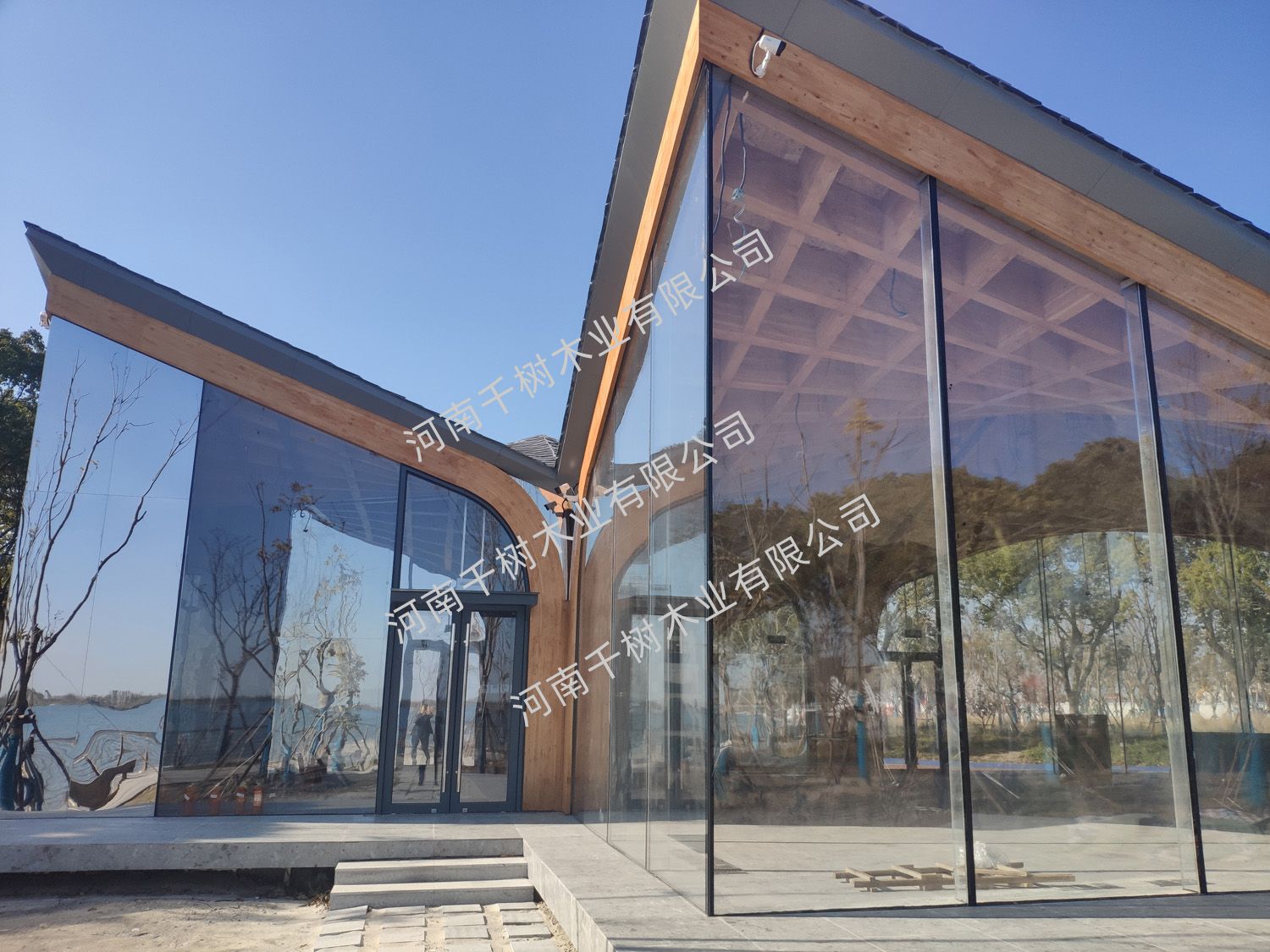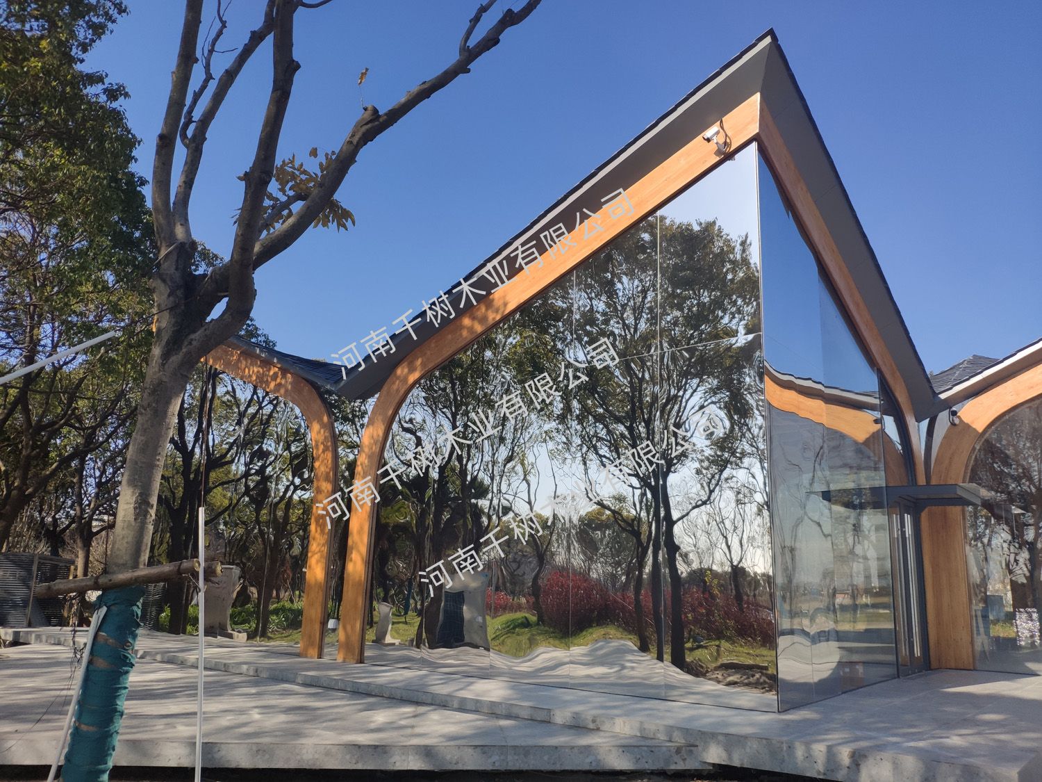 項(xiàng)目參數(shù):花旗松雙曲面膠合木框架,建筑面積260平米