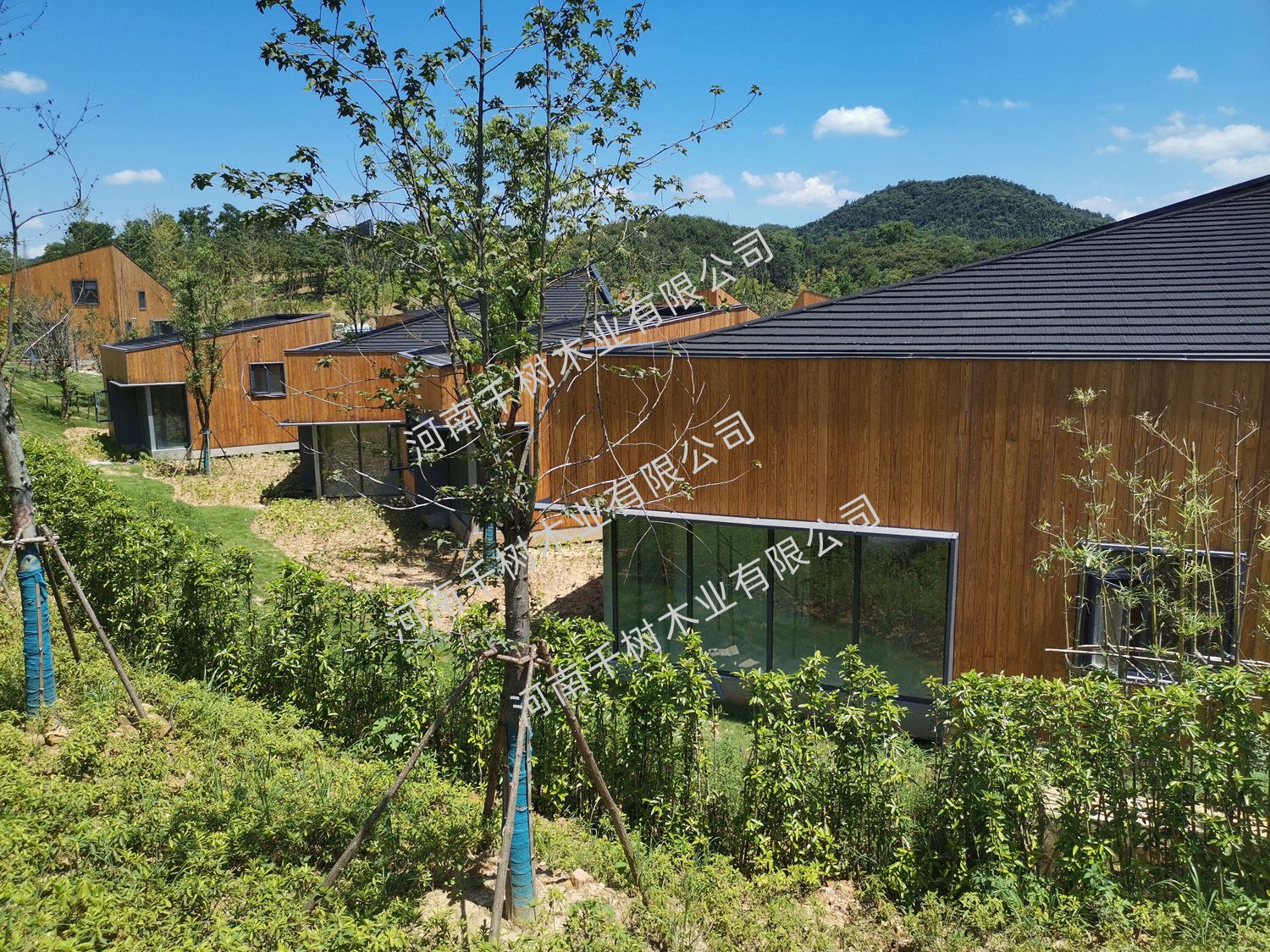 該項目2019年開工,2020年五一期間景區(qū)試營業(yè),民宿木屋選址根據(jù)地形錯落有致。選材精良,內(nèi)設(shè)精致。