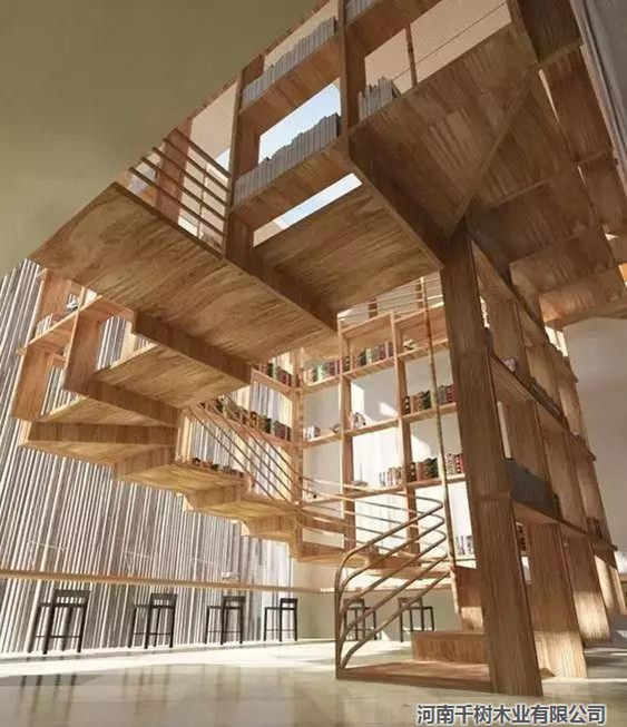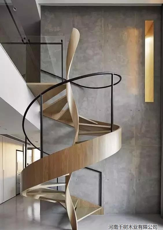 流線型的木構樓梯,