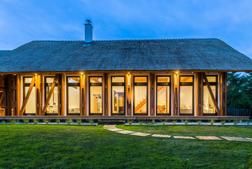 該住宅設(shè)計(jì)的主旨為:回歸自然,用當(dāng)代手法營(yíng)造傳統(tǒng)生活方式。住宅所有者親自參與到建筑的概念設(shè)計(jì)階段。建材方的緊密配合使得設(shè)計(jì)師的設(shè)計(jì)理念得以充分實(shí)現(xiàn)。