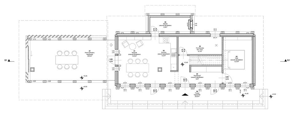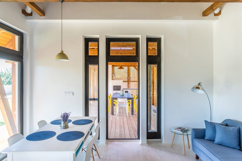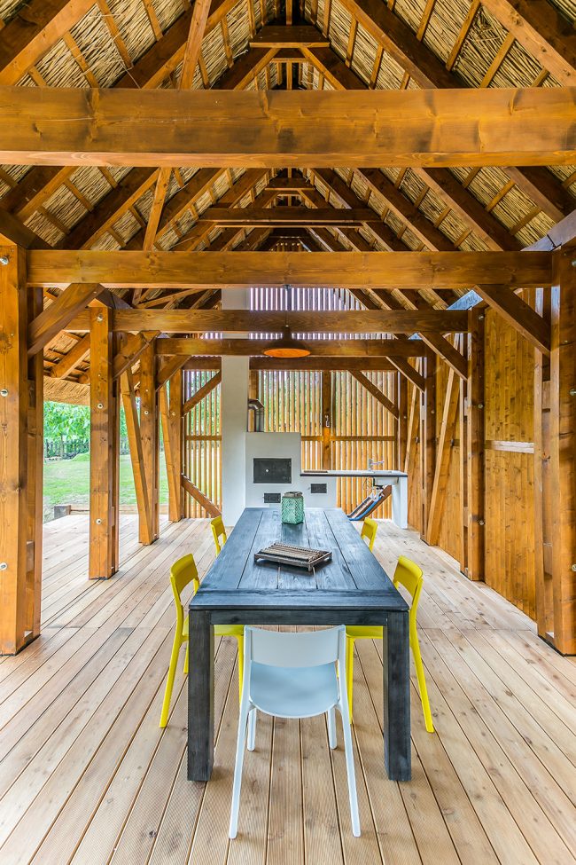 建筑采用自承重木結(jié)構(gòu),隔離墻放置在柱子之后。除外部露臺(tái)不設(shè)隔墻外,其自身結(jié)構(gòu)與建筑主體結(jié)構(gòu)并無(wú)二異。建筑設(shè)計(jì)充分遵循業(yè)主的設(shè)計(jì)要求,同時(shí)嚴(yán)格遵守Balaton丘陵地區(qū)的建設(shè)標(biāo)準(zhǔn)。