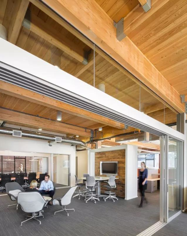 這是位于波特蘭市中心西端的SW 12th & Alder的Culver Building改造項(xiàng)目。在四分之一街區(qū)的地塊中,GDB建筑設(shè)計(jì)公司設(shè)計(jì)了在1920年的一幢20000平方英尺的二層建筑之上的加減部分,加建面積6000平方英尺,立面以玻璃和鋁為主。建筑保留了原有的基礎(chǔ)、現(xiàn)澆混凝土外墻、木屋頂結(jié)構(gòu),以及大部分的木梁柱。