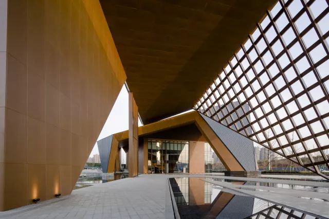 為了達到更輕薄的形體效果,建筑主體采用竹鋼搭建,豎向的立柱每根都為承重住,從而達到均勻受力的效果。“柱”與“梁”的連接部分采用簡單的交錯堆疊起來進行構(gòu)造的方法,使其在形式上產(chǎn)生出類似斗拱結(jié)構(gòu)的效果。