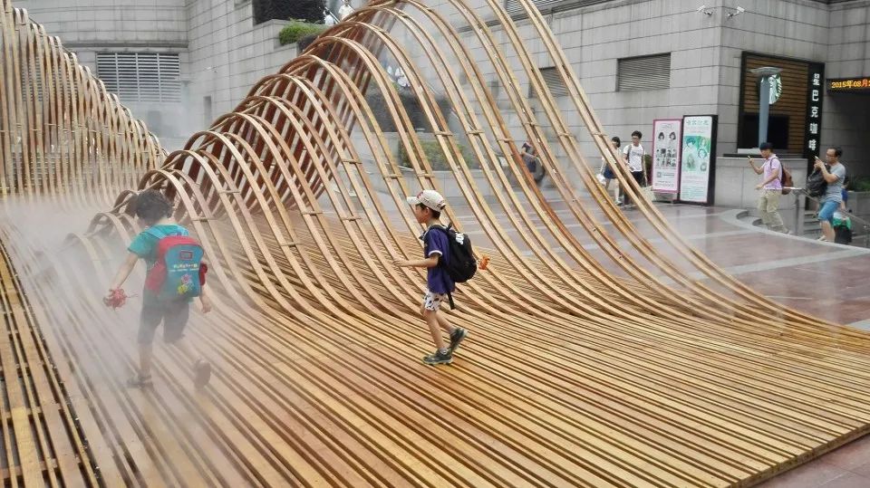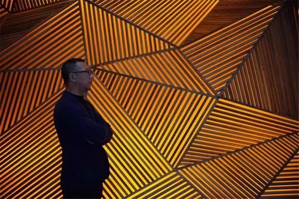 “也許人們會認為石頭是冰冷的、完全是無機物的狀態(tài),可我認為石頭是會說話的”,設(shè)計師王剛用竹鋼條材的相互搭接,在墻面上制作了一個又一個立體的石塊~
