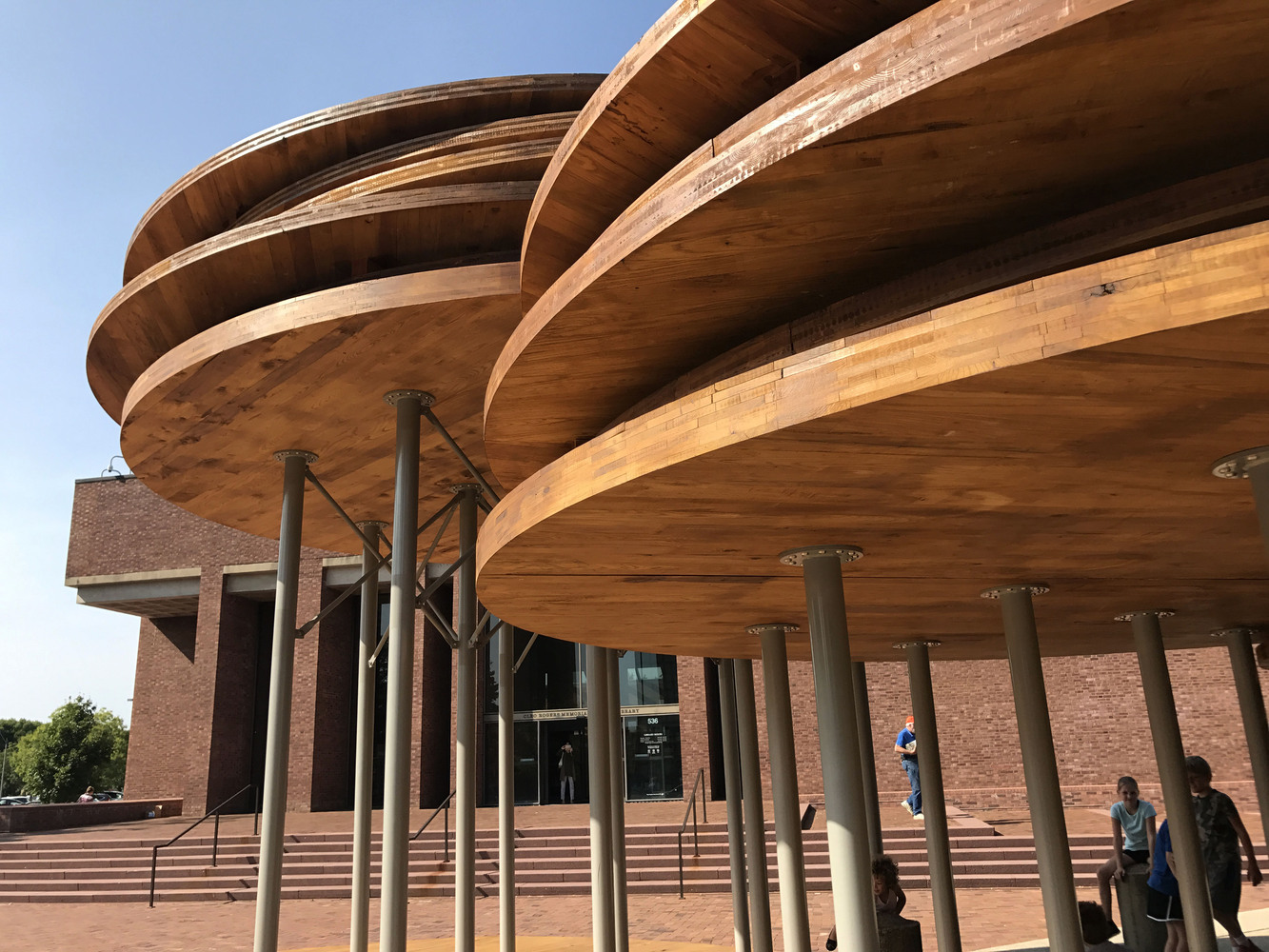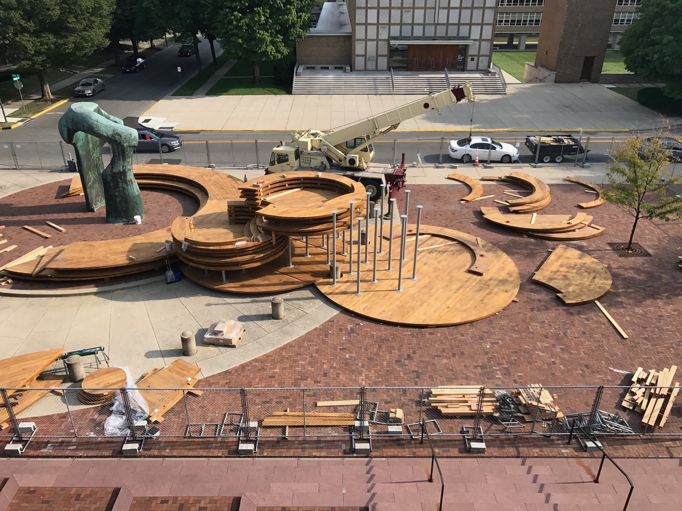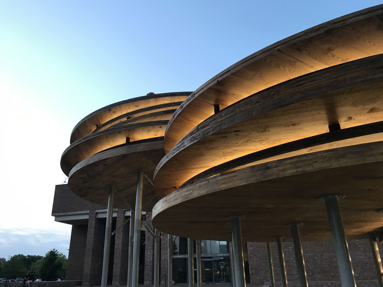 該設(shè)施為社區(qū)提供了一個不管從字面上還是隱喻上來看,都聚集,交流并且振奮人心的地方。從位于東半部的摩爾雕塑周邊開始,大型木材轉(zhuǎn)盤組成了一系列向西上升的底座。